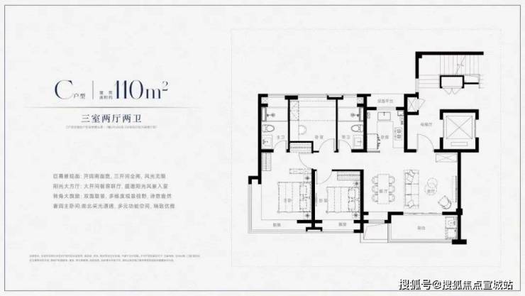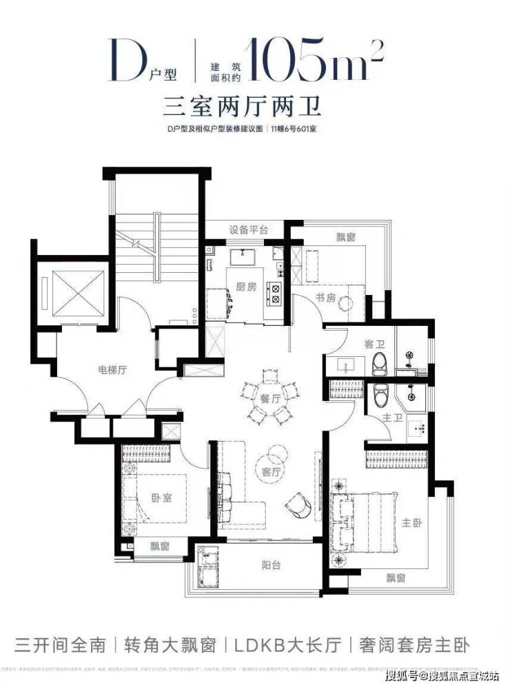 小高层的高得房率+飞机户型带来的0走道优势,让这个百平米户型做到了线房!