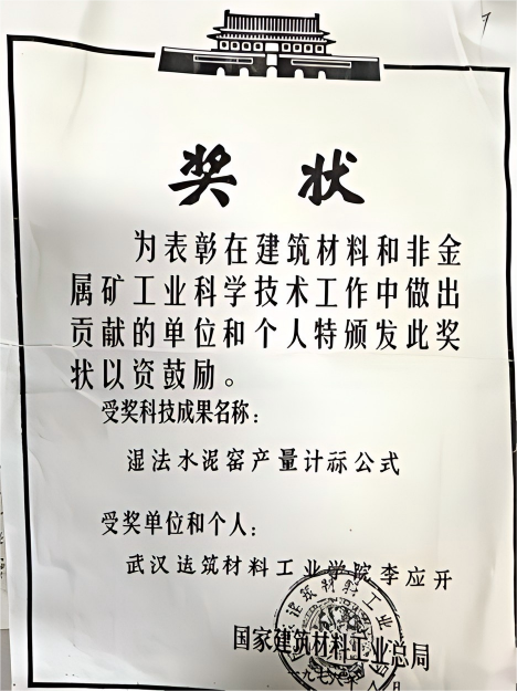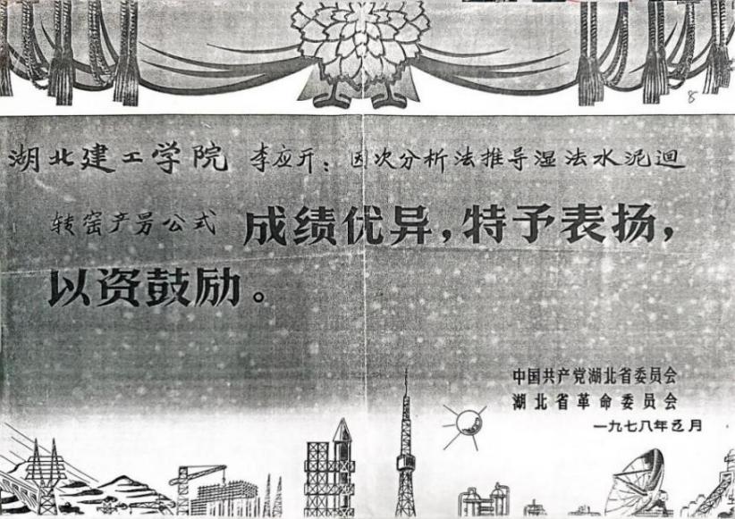 与此同时,我在课堂上长期给学生讲授因次分析,就想着把这个理论和我积累的实际测定的数据相结合,由此着手撰写论文,写完后寄到了北京水泥研究院。这篇论文在1978年被评选为重要成果,获省部级科学大会奖。1976年在水泥刊物上发表了用“因次分析”推导湿法水泥回转窑产量公式,在当时算是一个全国性的突破。该公式不只是理论上的创新,还能实实在在地指导生产和设计:生产上调足风量,使煤粉燃烧完全,提高火焰温度,增大温差,就能有效提升产量;设计上也能为水泥回转窑尺寸上指明方向,应该着重扩大直径。